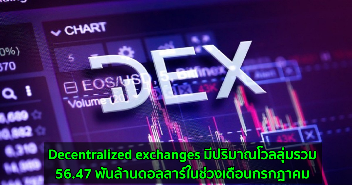 Decentralized exchanges มีปริมาณโวลลุ่มรวม 56.47 พันล้านดอลลาร์ในช่วงเดือนกรกฎาคม นับเป็นการลดลงอีกครั้งในโวลลุ่มรายเดือน