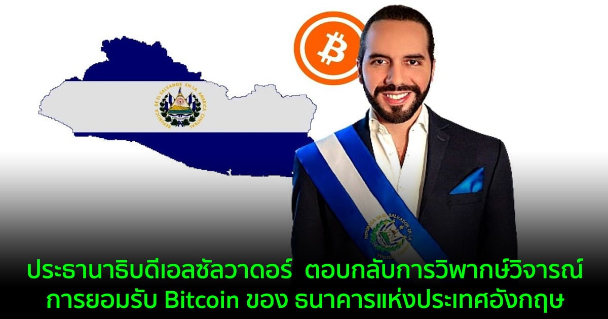 ธนาคารแห่งประเทศอังกฤษ (Bank of England) ไม่ได้เป็นแฟนคลับของ bitcoin โดยก่อนหน้านี้ผู้ว่าการ – แอนดรูว์ ไบลีย์ – ได้แสดง “ความกังวล” ของเขาออกมาซ้ำแล้วซ้ำเล่า แต่คราวนี้ ประธานาธิบดี นายิบ บูเคเล ของเอลซัลวาดอร์ได้ออกมาตอบโต้คำวิพากษ์วิจารณ์ล่าสุด