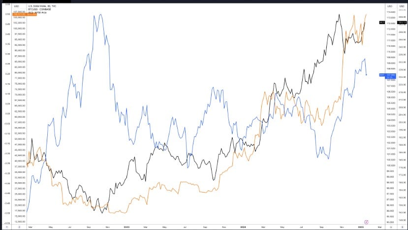ดัชนีดอลลาร์สหรัฐยังคงอ่อนค่าลง โดยร่วงลง 1.27% จากจุดสูงสุดในรอบ 2 ปีที่ 110 เมื่อวันที่ 15 มกราคม มาอยู่ที่เหนือระดับ 108 เล็กน้อย เมื่อปี 2024 สิ้นสุดลงและในช่วงต้นปี 2025 ความกังวลของนักลงทุนเกี่ยวกับรัฐบาลทรัมป์ที่กำลังจะเข้ามาบริหารประเทศและความตึงเครียดทางภูมิรัฐศาสตร์อื่นๆ สะท้อนให้เห็นจากการพุ่งขึ้นอย่างรวดเร็วของอัตราผลตอบแทนพันธบัตรสหรัฐและดัชนีดอลลาร์ หลังจากการส่งมอบอำนาจอย่างราบรื่นจากอดีตประธานาธิบดีไบเดนสู่คณะรัฐมนตรีของทรัมป์ที่ประกาศว่าจะมุ่งเน้นด้านเศรษฐกิจ ดัชนีดอลลาร์ได้เย็นลงพร้อมกับอัตราผลตอบแทนพันธบัตร