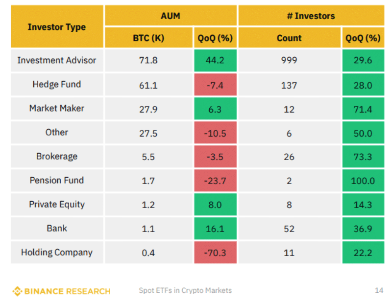 ที่ปรึกษาการลงทุนและกองทุนป้องกันความเสี่ยง มีความสนใจใน Bitcoin ETF มากที่สุด ที่มา: Binance