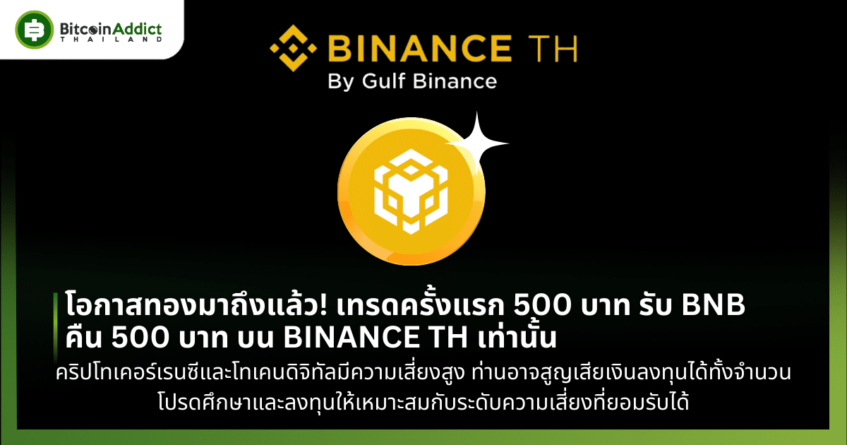 BINANCE TH เปิดตัวแคมเปญสุดพิเศษสำหรับนักลงทุนและมือใหม่! เพียงทำการเทรดครั้งแรกบน BINANCE TH เป็นจำนวน 500 บาท รับเลย BNB คืนมูลค่า 500 บาท
