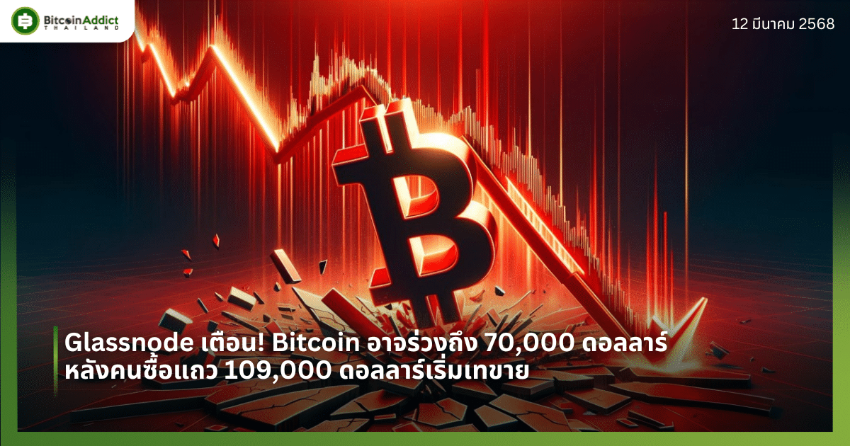 Glassnode เตือน! Bitcoin อาจร่วงถึง 70,000 ดอลลาร์ หลังคนซื้อแถว 109,000 ดอลลาร์เริ่มเทขาย
