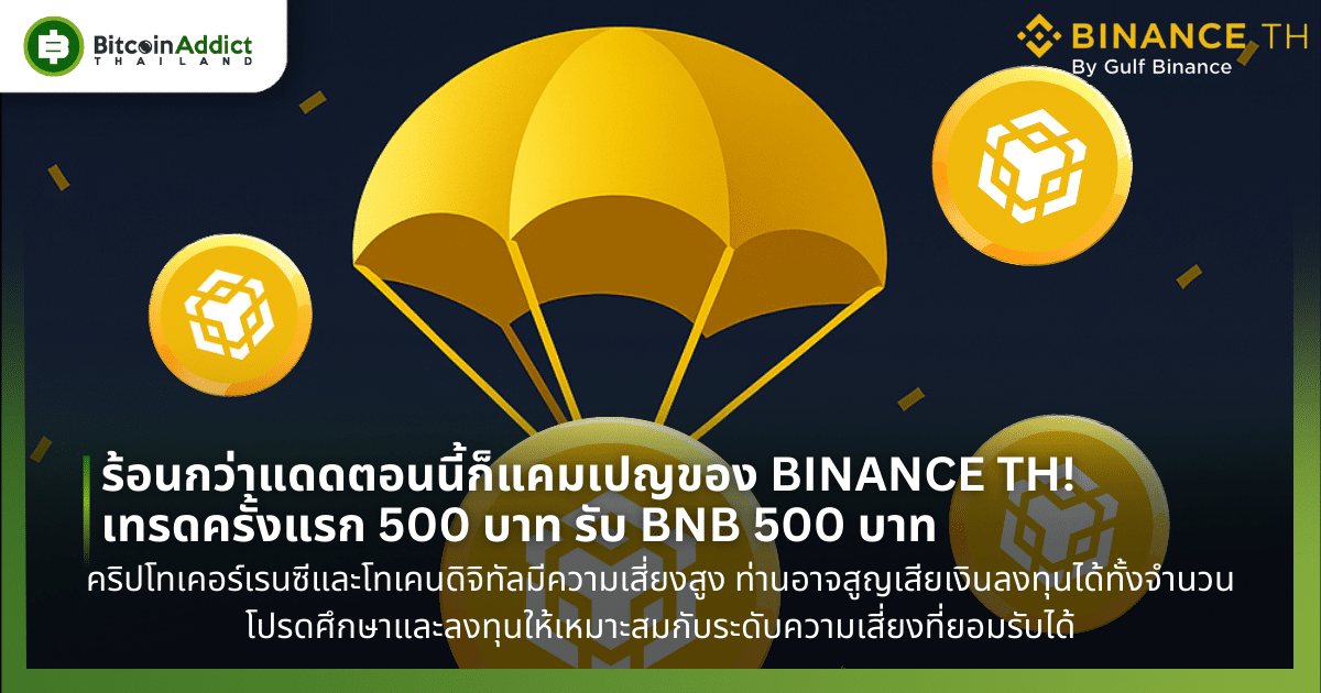 📣 โอกาสสุดปังที่นักเทรด ทั้งมือใหม่และมือเก๋า ห้ามพลาด! BINANCE TH จัดใหญ่ ต้อนรับเพื่อน ๆ เข้าสู่โลกสินทรัพย์ดิจิทัล เพียงเทรดครั้งแรก บน BINANCE TH ด้วยเงินเพียง 500 บาท รับ BNB มูลค่า 500 บาท ไปเทรดต่อ