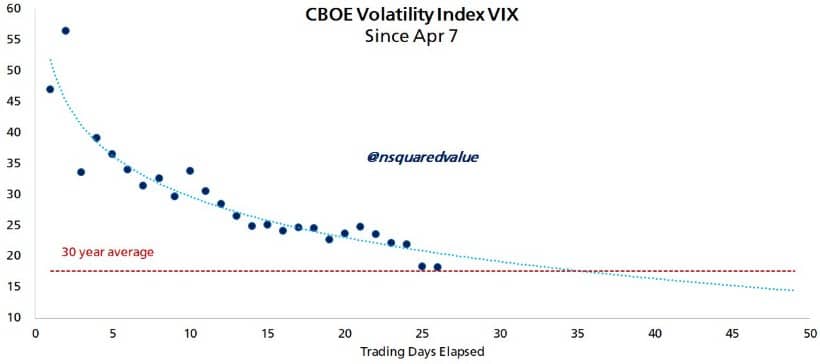 หนึ่งในแรงส่งสำคัญคือการที่ดัชนี CBOE Volatility Index (VIX) ซึ่งเป็นตัวชี้วัดความผันผวนของตลาดหุ้นสหรัฐฯ ร่วงลงสู่ระดับเฉลี่ยในรอบ 30 ปีที่ 20 จุด หลังจากเคยแตะจุดสูงสุดที่ 60 เมื่อต้นปี ซึ่งถือเป็นสัญญาณว่าความวิตกของตลาดลดลง นักลงทุนเริ่มกล้าเปิดรับความเสี่ยงมากขึ้น