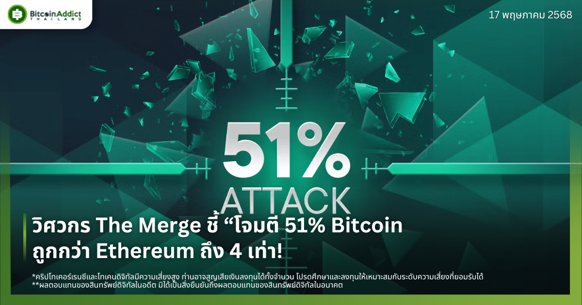 Justin Drake หนึ่งในผู้ออกแบบกลไก The Merge ของ Ethereum ให้สัมภาษณ์กับ Cointelegraph ว่า “การโจมตี 51% บน Bitcoin จะถูกกว่าบน Ethereum มาก” โดยเขาประเมินว่าหากจะเจาะระบบ Bitcoin ให้สำเร็จต้องใช้เงิน ราว $10,000 ล้านดอลลาร์