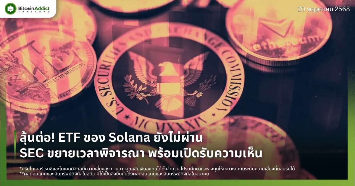 สำนักงานคณะกรรมการกำกับหลักทรัพย์และตลาดหลักทรัพย์สหรัฐฯ (SEC) ประกาศเลื่อนการตัดสินใจเกี่ยวกับกองทุน Solana ETF ที่ยื่นโดย 21Shares และ Bitwise พร้อมเปิด “กระบวนการพิจารณา” และ เชิญชวนให้ประชาชนแสดงความคิดเห็นต่อข้อเสนอ อย่างเป็นทางการ