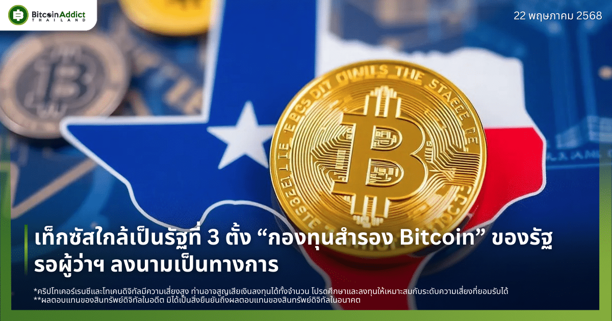 เท็กซัสกำลังจะกลายเป็นรัฐที่สามในสหรัฐฯ ที่สร้างกองทุนสำรอง Bitcoin ของรัฐ หลังจากที่สภานิติบัญญัติเท็กซัสผ่านร่างกฎหมาย Senate Bill 21 เพื่ออนุญาตให้ตั้งกองทุนนี้ได้ โดย Lee Bratcher ผู้ก่อตั้งและประธาน Texas Blockchain Council เปิดเผยว่าเขาได้พูดคุยกับผู้ว่าการรัฐ Greg Abbott และคาดว่าผู้ว่าฯ จะลงนามอนุมัติภายใน “หนึ่งถึงสองสัปดาห์” ข้างหน้า