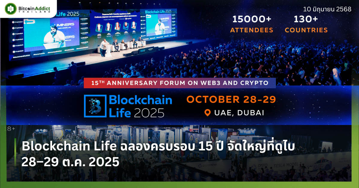 Blockchain Life ฟอรั่มนานาชาติชั้นนำด้าน Web3 และคริปโต เตรียมจัดงานฉลองครบรอบครั้งที่ 15 ที่ดูไบในวันที่ 28–29 ตุลาคม 2025 งานนี้ถือเป็นหนึ่งในอีเวนต์สำคัญที่ไม่ควรพลาด ด้วยจำนวนวิทยากรที่มากเป็นประวัติการณ์ เวทีบรรยายถึง 2 เวที โซนกิจกรรมขยายใหญ่ขึ้น และโอกาสในการสร้างเครือข่ายระดับพรีเมียมสำหรับผู้เข้าร่วมกว่า 15,000 คน — จัดขึ้นในช่วงเวลาที่คาดว่าจะเข้าสู่จุดพีคของตลาดขาขึ้นพอดี