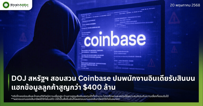 DOJ สหรัฐฯ สอบสวน Coinbase ปมพนักงานอินเดียรับสินบน แฮกข้อมูลลูกค้าสูญกว่า $400 ล้าน