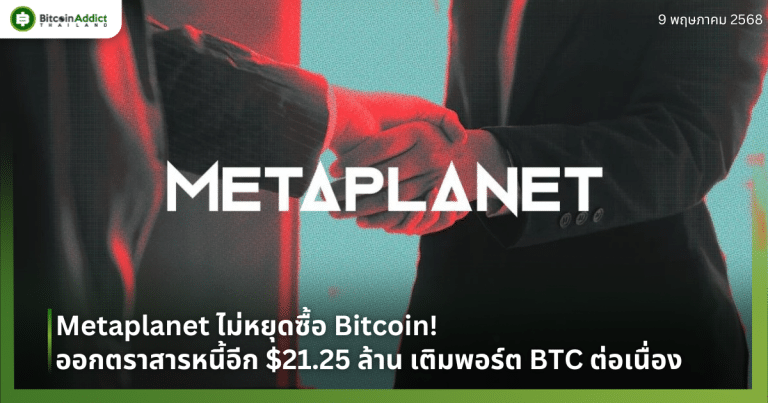 Metaplanet ไม่หยุดซื้อ Bitcoin! ออกตราสารหนี้อีก $21.25 ล้าน เติมพอร์ต BTC ต่อเนื่อง