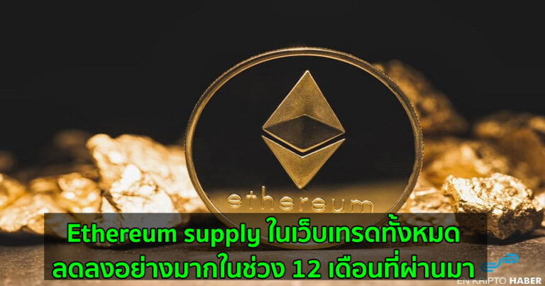 Ethereum supply ในเว็บเทรดทั้งหมด ลดลงอย่างมากในช่วง 12 เดือนที่ผ่านมา