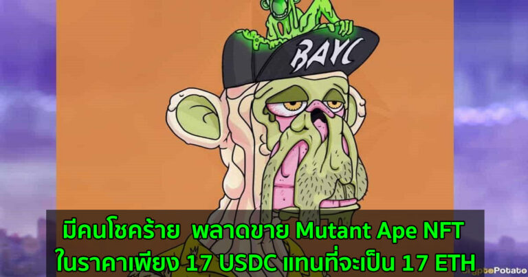 มีคนโชคร้าย พลาดขาย Mutant Ape NFT ในราคาเพียง 17 USDC แทนที่จะเป็น 17 ETH