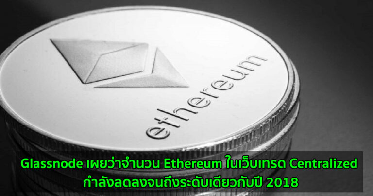 Glassnode รายงานว่าจำนวน Ethereum ในเว็บเทรด Centralized กำลังลดลงจนถึงระดับเดียวกับปี 2018