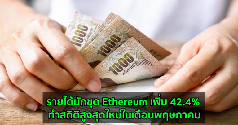 รายได้นักขุด Ethereum เพิ่ม 42.4% ทำสถิติสูงสุดใหม่ในเดือนพฤษภาคม