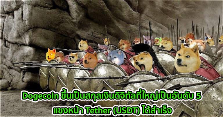 Dogecoin ขึ้นเป็นสกุลเงินดิจิทัลที่ใหญ่เป็นอันดับ 5 แซงหน้า Tether (USDT) ได้สำเร็จ