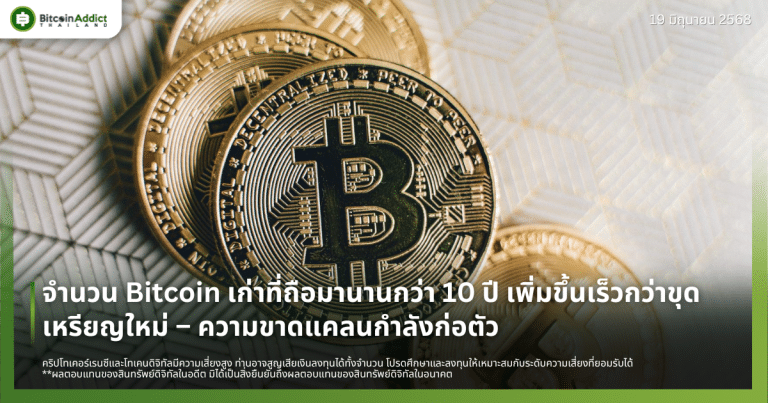 จำนวน Bitcoin เก่าที่ถือมานานกว่า 10 ปี เพิ่มขึ้นเร็วกว่าขุดเหรียญใหม่ – ความขาดแคลนกำลังก่อตัว