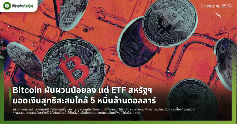 Bitcoin ผันผวนน้อยลง แต่ ETF สหรัฐฯ ยอดเงินสุทธิสะสมใกล้ 5 หมื่นล้านดอลลาร์