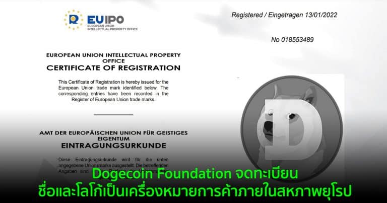 Dogecoin Foundation จดทะเบียนชื่อและโลโก้เป็นเครื่องหมายการค้าภายในสหภาพยุโรป