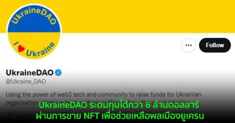 UkraineDAO ระดมทุนกว่า 6 ล้านดอลลาร์ ผ่านการขาย NFT เพื่อช่วยเหลือพลเมืองยูเครน