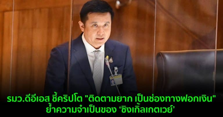 รมว.ดีอีเอส ชี้คริปโต “ติดตามยาก เป็นช่องทางฟอกเงิน” ย้ำความจำเป็นของ ‘ซิงเกิ้ลเกตเวย์’