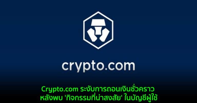Crypto .com ระงับการถอนเงินชั่วคราว หลังพบ ‘กิจกรรมที่น่าสงสัย’ ในบัญชีผู้ใช้