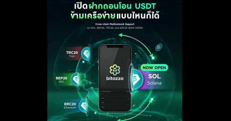 Bitazza เปิดให้โอน USDT ข้ามเครือข่าย รองรับทั้ง SOL BEP20 TRC20 และ ERC20