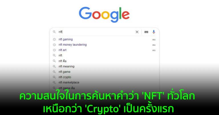 ความสนใจในการค้นหาคำว่า ‘NFT’ ทั่วโลก เหนือกว่า ‘Crypto’ เป็นครั้งแรก