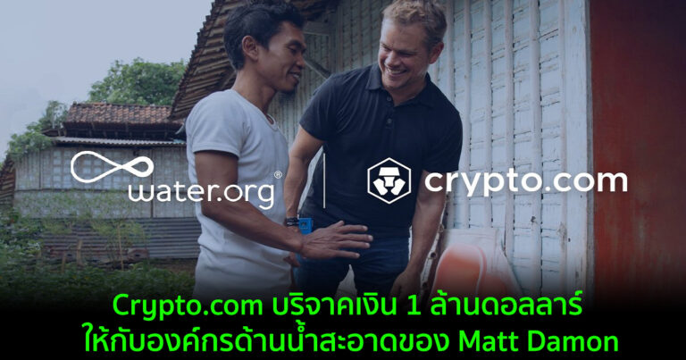 Crypto .com บริจาคเงิน 1 ล้านดอลลาร์ ให้กับองค์กรด้านน้ำสะอาดของ Matt Damon