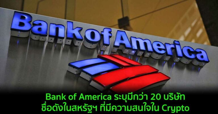 Bank of America ระบุมีกว่า 20 บริษัทชื่อดังในสหรัฐฯ ที่มีความสนใจใน Crypto