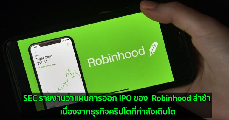 SEC รายงานว่าแผนการออก IPO ของ Robinhood ล่าช้า เนื่องจากธุรกิจคริปโตที่กำลังเติบโต