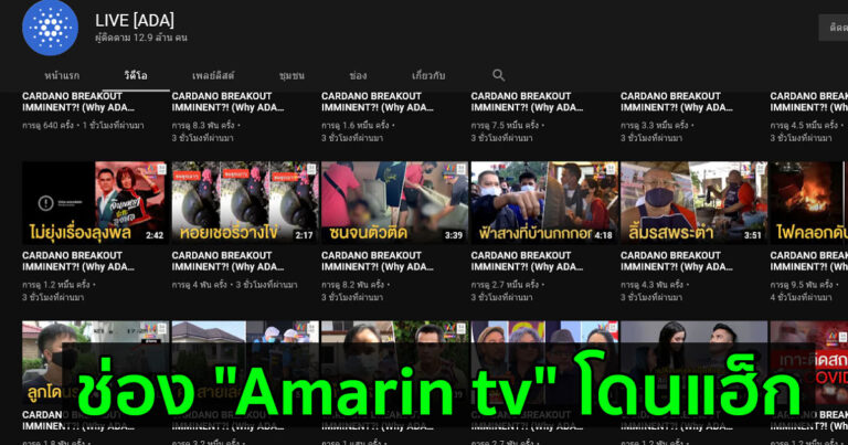 Amarin TV เผย กำลังติดต่อ Youtube Thailand เพื่อกู้ช่องคืน หลังถูกแฮ็กช่องไปโปรโมท Cardano (ADA)