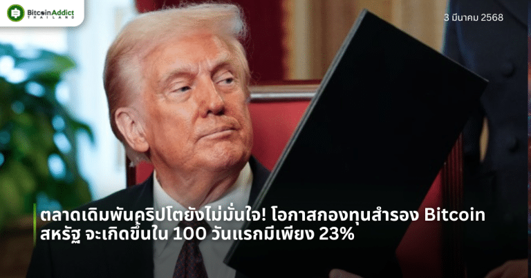 ตลาดเดิมพันคริปโตยังไม่มั่นใจ! โอกาสกองทุนสำรอง Bitcoin สหรัฐ จะเกิดขึ้นใน 100 วันแรกมีเพียง 23%