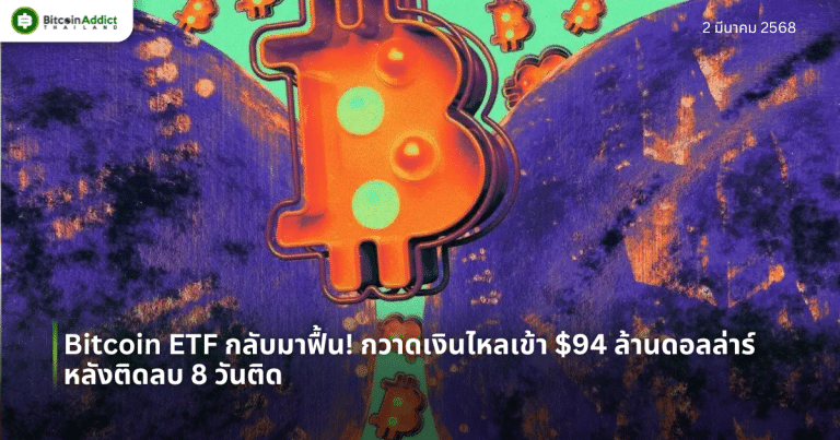 Bitcoin ETF กลับมาฟื้น! กวาดเงินไหลเข้า $94 ล้านดอลล่าร์ หลังติดลบ 8 วันติด
