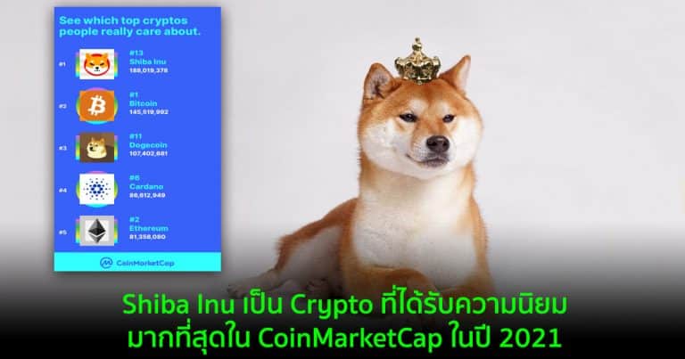 Shiba Inu เป็น Crypto ที่ได้รับความนิยมมากที่สุดใน CoinMarketCap ในปี 2021 แซงหน้า Bitcoin และ Dogecoin