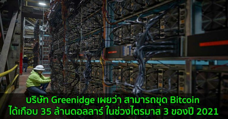 บริษัท Greenidge เผยว่า สามารถขุด Bitcoin ได้เกือบ 35 ล้านดอลลาร์ ในช่วงไตรมาส 3 ของปี 2021
