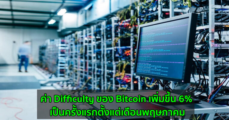 ค่า Difficulty ของ Bitcoin เพิ่มขึ้น 6% เป็นครั้งแรกตั้งแต่เดือนพฤษภาคม
