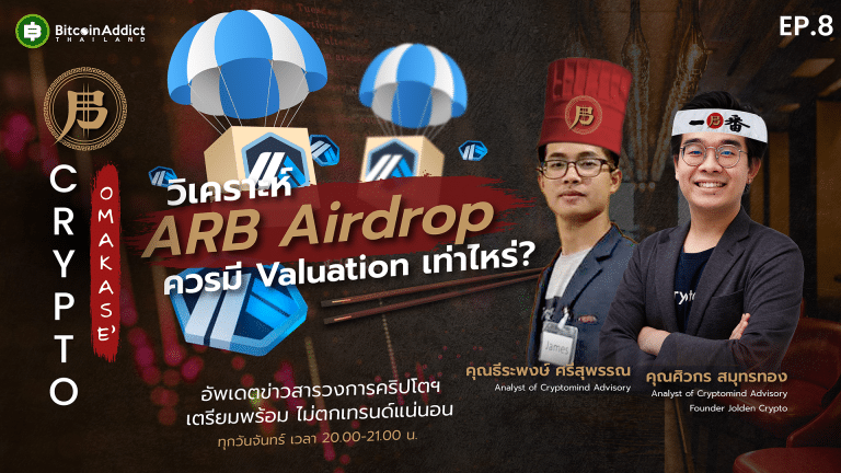“CryptOmakase” EP.8 “วิเคราะห์ ARB Airdrop ควรมี Valuation เท่าไหร่?” จันทร์นี้ 2 ทุ่ม