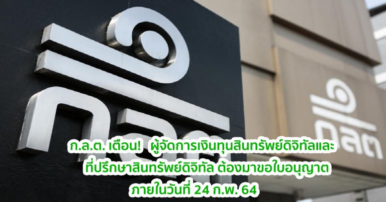 ก.ล.ต. เตือน ผู้จัดการเงินทุนสินทรัพย์ดิจิทัล และที่ปรึกษาสินทรัพย์ดิจิทัล ต้องมาขอใบอนุญาตภายในวันที่ 24 ก.พ. 64